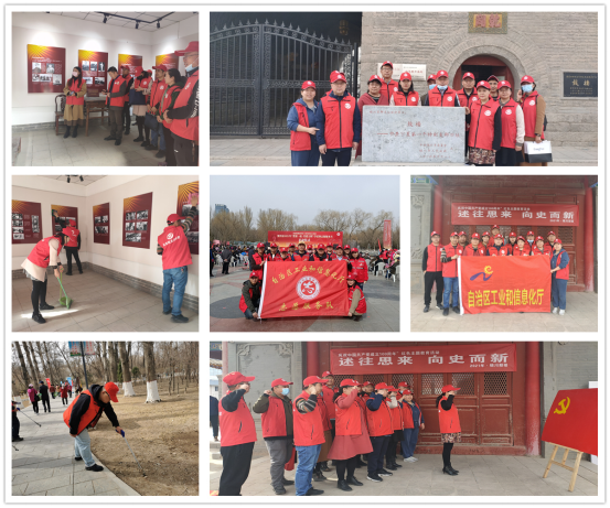 大数据与软件产业处、化工处、军民结合推进处、新兴产业处等党支部14名党员干部,在银川鼓楼与银川市文物管理处党支部等党组织联合举办“学党史缅革命先烈 学雷锋护文物原貌”主题党日暨学雷锋集中志愿服务活动。活动中,党员志愿者参观了宁夏第一个共产党的组织—“中共宁夏特别支部旧址”,认真观看刘伯坚、宣侠父等一批革命先烈在宁夏开展革命活动留下的宝贵资料和图片,感受英雄先烈浴血奋战的革命历程。随后,重温入党誓词,对鼓楼外围和内部设施以及红色教育基地主题陈列馆中的设施认真进行了清洁,以表达对先烈的崇敬之情。同日,培训中心、政策法规处党支部组织党员干部,在中山公园联合开展“学习党史牢记初心使命 缅怀先烈传承雷锋精神”主题党日活动暨学雷锋志愿服务活动。