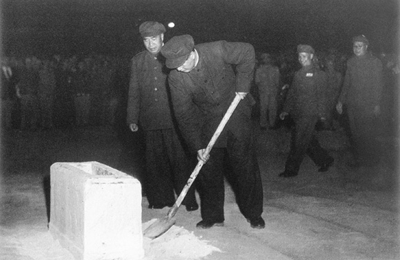 1949年9月30日,毛泽东、朱德等在天安门广场为人民英雄纪念碑奠基