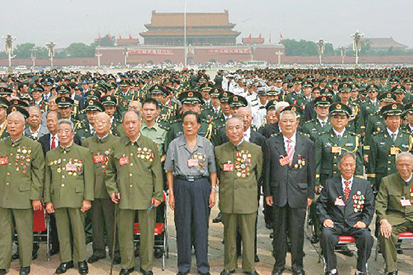 2007年7月31日,出席全军英雄模范代表大会的代表在人民英雄纪念碑前举行敬献花篮仪式