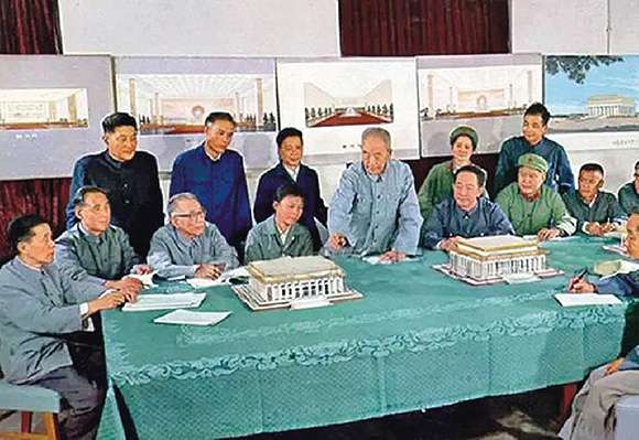 相关人员研究毛主席纪念堂的设计方案