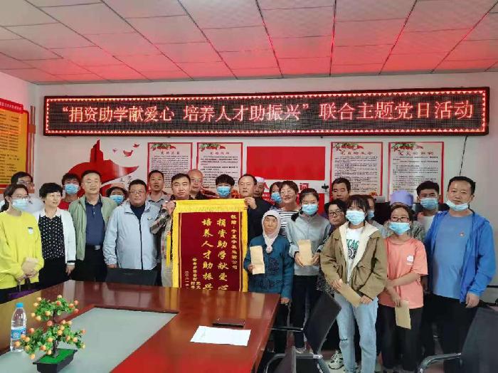 活动中学习了乡村振兴相关文件,徐套乡党委负责人和徐套村党支部分别介绍了乡村两级基本情况和特色产业推进情况,向捐资企业授予“捐资助学献爱心、培养人才助振兴”锦旗,爱心企业为学生们发放了助学金。受捐助的15名学生一致表示:请党放心,青春有我、强国有我、乡村振兴有我;今后要始终怀着一颗感恩的心,积极奋进,用知识武装自己,努力学习,并将爱心传递下去,为社会做出应有的贡献。工信厅军民结合推进处党支部表示,将与徐套村一道,深入学习习近平总书记视察宁夏重要讲话和“七一”重要讲话精神,积极探索巩固脱贫攻坚成果同乡村振兴有效衔接的有效途径,在深入实施“四大提升行动”,尤其在产业发展转型、人居环境综合整治等重点环节出主意、想办法,巩固推动驻村乡村振兴。
