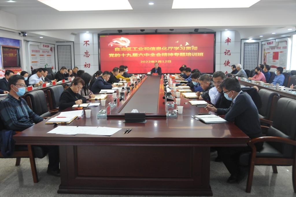 培训班邀请自治区党委讲师团团长张虎和自治区宣讲团成员李淑萍副教授,围绕“十九届六中全会精神解读”“以铸牢中华民族共同体意识为主线,推动新时代党的民族工作高质量发展”等主题,深刻全面的阐释解读了十九届六中全会和自治区党委十二届十三次、十四次全会精神等;邀请国家工业信息安全发展研究中心高级工程师张熠天博士作了“大力发展数字经济 加快构建新发展格局”业务辅导。通过专题授课,帮助全厅干部职工准确掌握十九届六中全会及自治区党委十二届十三次、十四次全会精神等思想精髓和核心要义,教育引导大家汲取力量,提振奋进信心,勇毅前行,担当作为,为推动“十四五”时期工业经济高质量发展奠定坚实理论基础。
