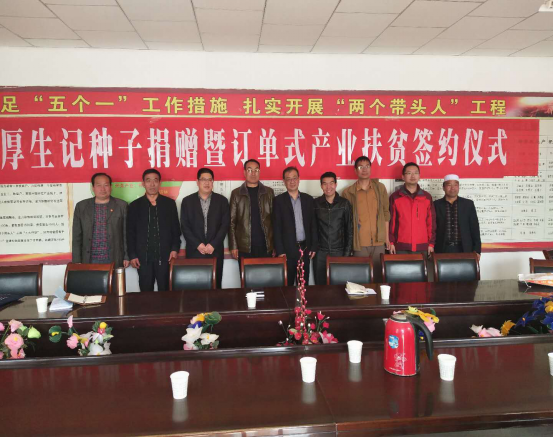 依靠产业发展,实现稳步脱贫,是自治区经信委党组确定的扶贫富民思路。为此,经信委领导多次深入扶贫点调研、听取驻村工作队汇报、研究制定扶贫方案。扶贫工作队始终把发展产业作为脱贫攻坚的主要抓手,全力推进产业增收增效。经多方努力、协调,2018年3月26日,宁夏厚生记食品有限公司葵花种子捐赠暨订单式产业扶贫签字仪式在彭阳县新集乡大火村举行,彭阳县新集乡、县农牧局有关领导、驻村扶贫工作队、定点帮扶村的干部及部分村民代表参加了捐赠签字仪式。