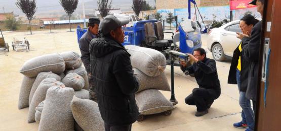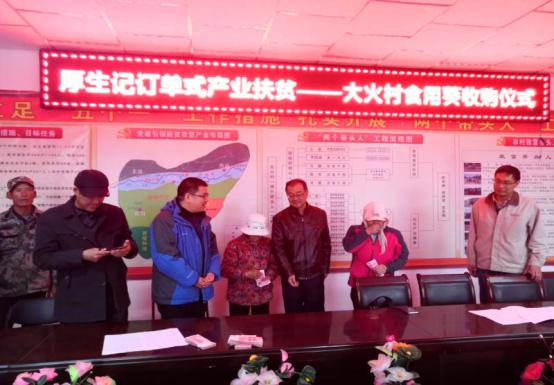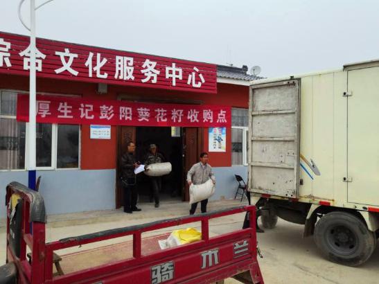 大火村群众初尝订单式产业扶贫硕果厚生记在大火村开展食葵收购活动