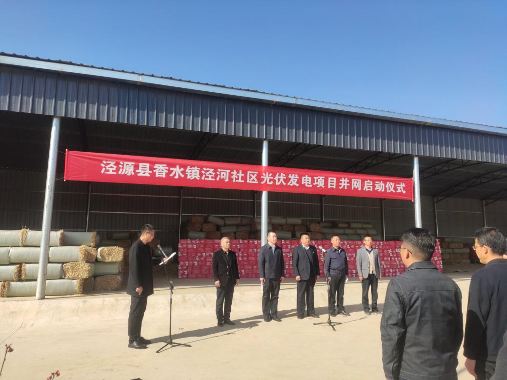 2023年3月29日上午,泾源县香水镇泾河社区光伏电站(一期)并网启动仪式在香水镇卡子村举行。泾源县副县长张怀彪及香水镇政府、农业农村局、乡村振兴局、供电公司等有关单位代表参加。