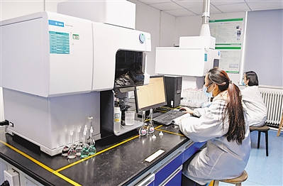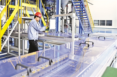①宁夏艾森达新材料科技有限公司技术人员在查看设备运转情况。该公司拥有先进的氮化铝粉末散热基板生产线。氮化铝粉体是最好的散热非金属之一,目前已被应用于高铁、新能源汽车、航空航天及5G等领域。