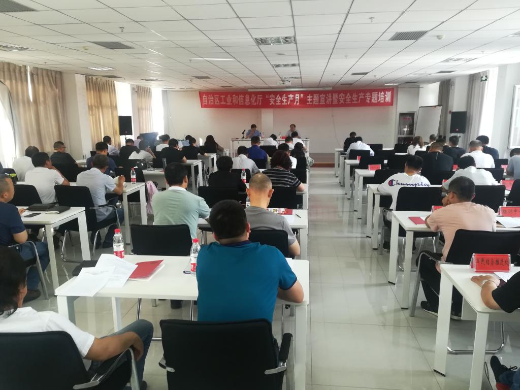 为认真贯彻落实国务院、自治区安委办和厅党组关于“安全生产月”和“安全生产万里行”活动的会议精神,6月13日,熟女丝袜 开展了由五市工信局相关负责人、部分军工企业、全区民爆生产销售企业主要负责人、重要安全岗位人员和厅安委会成员共计75人参加的“安全生产月”主题宣讲活动。会上,熟女丝袜 党组成员、总经济师李怀马同志作了主题宣讲,自治区安全生产专家赵永平进行了安全生产专题辅导,军民结合推进处就民爆行业安全监管、企业落实安全生产主体责任以及军工企业在安全生产中应防范的重点工作开展了专题培训。