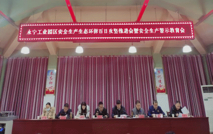 永宁工业园区安全生产 生态环保百日攻坚推进会暨安全生产警示教育会上,传达学习了习近平总书记对山西吕梁市永聚煤矿一办公楼火灾重要指示和李强总理批示精神,传达学习了11月20日全区工业和信息化领域安全生产视频调度会议精神。会议通报了永宁县2023年度火灾事故情况、永宁工业园区安全生产生态环保“百日攻坚”行动相关工作推进情况,并安排部署下一阶段安全生产和生态环保有关工作。永宁工业园区党工委班子成员、部室负责人,以及园区物流企业、建筑施工单位、创业园、消防重点单位等企业主要负责人参加会议。